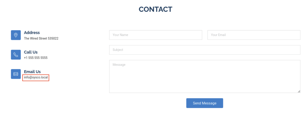 After we’ve added the IP to our hosts file we can now browse to http://dc01.sysco.local. The page shows a Website of a MSP calles Sysco